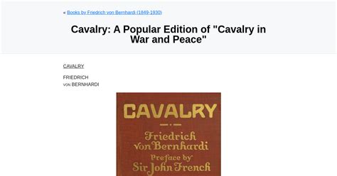 Read Online Cavalry: A Popular Edition of "Cavalry in War and Peace" Doc